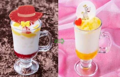 3月31日までは、ジェシーをモチーフにしたイチゴミルク系のドリンクですが、4月1日からはバターカップをモチーフにした、マンゴーフルーツミックスシロップ入りのヨーグルトドリンクになります🥭🐮🥛