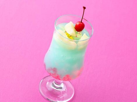 「クリスタルパレス・レストラン」で今頂けるこの「スペシャルドリンク(グレープフルーツ&ライチー、ピーチゼリー)」、ものすごく色がヴァネロペっぽいなと思います!!🍑🩵🍒