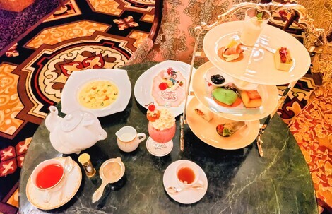 キャストさんに紅茶のおかわりをお願いするついでに一応聞いてみましたが、特にミッキーシェイプになるように配置しているわけではないとのこと。