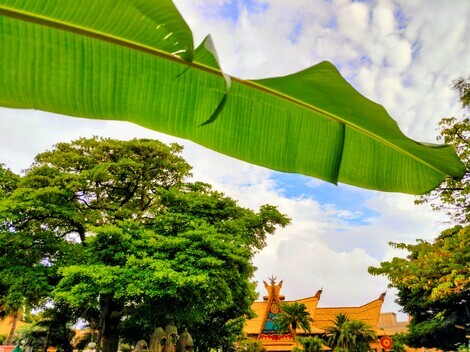 にわか雨を、大きな葉っぱで凌ぐ🌿⛈️