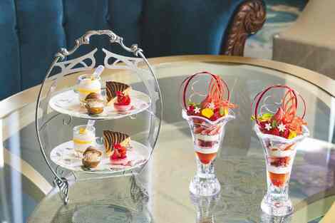 アンバサダーホテルの「ハイピリオン・ラウンジ」で4月8日から頂ける、「東京ディズニーシー25周年“スパークリング・ジュビリー”プレミアムスウィーツセット」です。