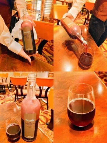 どんなブドウジュースが来るかと思ったら、こんなワインみたいなボトルで来ました…🍾!