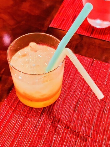 マンダリンオレンジとピーチシロップを炭酸で割ったもので、フルーティーですがあっさりしていて飲みやすいです(’-^)b🍹♪
