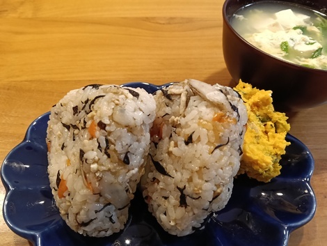 ホッとする炊き込みご飯おにぎりを作りました(^^)根菜たっぷりにすると、冬らしくなりますね❤️