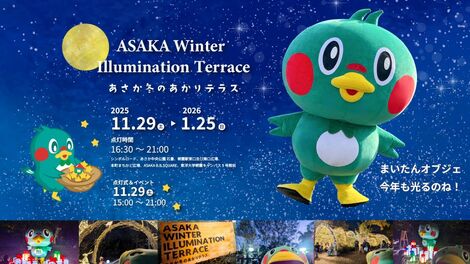 埼玉県朝霞市のイルミネーションイベント「あさか冬のあかりテラス2025」では、まいたんのオブジェも登場します🐤✨