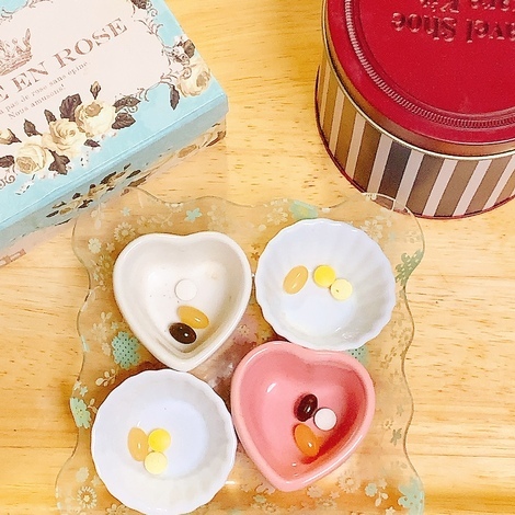 夕食後は一日で1番栄養がとれるメニューなので、補足するビタミンなどのサプリを飲みます。寝る前は、コラーゲンや乳酸菌など、寝てる間に作られる肌や腸活、骨サプリを飲みます。