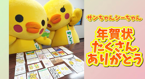 年賀状じまいが広がる近年、そんな流れに逆行して、今年は、初めてサンちゃんシーちゃんへの年賀状を受付け、素敵な年賀状をたくさん送っていただきました。ありがとうございました。