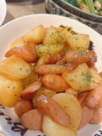 簡単に作れる大根の煮付けと、じゃがいもの炒め物。