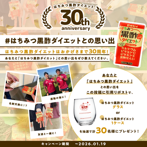30周年を記念して、みなさんと「はちみつ黒酢ダイエット」との思い出を募集するキャンペーンを開催します!!!