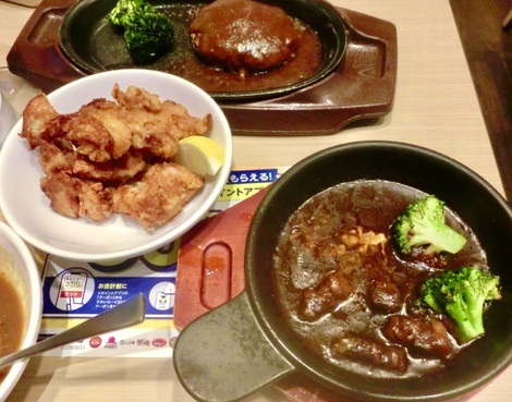 カレーを食べていると唐揚げ、チーズINハンバーグ、ビーフシチューも到着。