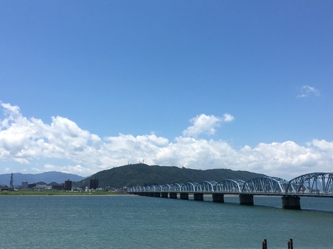 ・通学途中に堤防から見える吉野川の風景です。青春真っ只中の3年間、晴れの日も雨の日も大きな吉野川を隣に、自転車を走らせていました。今は私の子どもが同じ道を通っています。