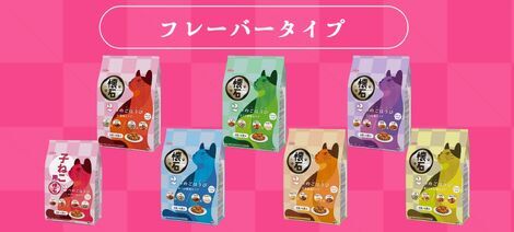 お肉とお魚味の粒と小魚・かつお節・まぐろ節など、2種の様々なトッピングでグルメな猫様でも満足していただけるラインナップです。