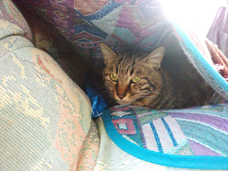 寒いのでソファーとシーツの間に潜り込んでます💖