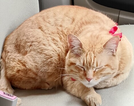 今は車の助手席で昼寝してます。