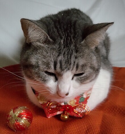 新年が明けて、すでに3週間過ぎてしまいましたが、猫のミネルにお正月用の首飾りをつけて、写真撮影に協力して貰いました~🎍📷️😽