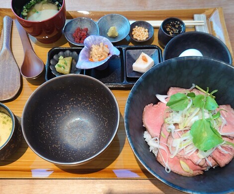 先月の宮崎旅行でホテルの朝食で食べた宮崎牛のローストビーフ丼です😋