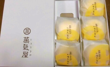 鹿児島の友だちに会いに行ったとき、帰りに蒸気屋さんの「かすたどん」を持たせてくれました。