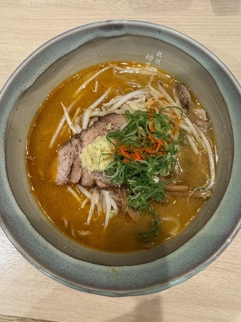 香ばしく焼いた野菜と焼豚がまろやかなスープのアクセントに。手間を惜しまず、お肉や野菜は道産を使用するこだわりが素晴らしい。生姜が添えられ味の変化も楽しめます。
