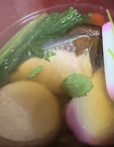 ●道外の友人に驚かれるのが、お餅と一緒に大きな「じゃがいも」が入っていること。ホクホクのじゃがいもがお出汁を吸って、お餅とはまた違う満足感があります。このボリューム感がないと新年が始まった気がしません。
