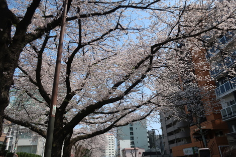 練馬区の中村橋のあたりの週末の桜千川通り沿いは桜がきれいです