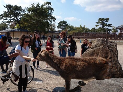 おすすめスポットは、奈良公園の朝の飛火野。鹿が走ってきます。