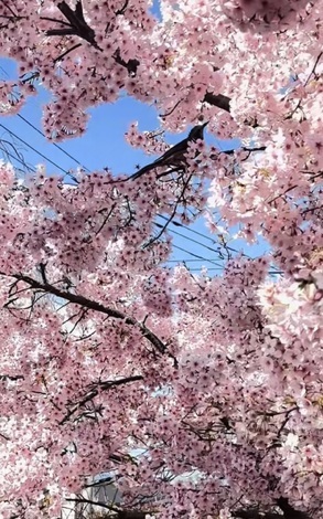 ●少し山の上にある公園が穴場スポットです。街を見下ろしながら桜を眺められるので、景色とのコントラストが楽しめます。散り始めの頃は、地面が花びらでピンク色に染まって、それもまた素敵なんです。夕方の時間帯がおすすめです。