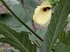 変った花という印象でした。通り過ぎて戻るほど気になる姿形でした。オクラの花でした。強風に煽られての一枚。