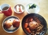 親子丼、茹で小松菜、吸い物、りんご