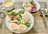 飲食店でサラダ、ミートグラタン、パンなどを食べました。