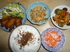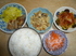 チキンソテーボイルドキャベツ、野菜のキムチ和え、なます、炒り豆腐、じゃこご飯