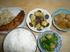 めかぶ納豆、さつま芋バターソテー、豆腐サラダ、小松菜と焼き油揚げポン酢、ご飯
