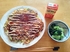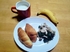 塩パン、ほうれん草と胸肉、バナナ、ホットミルク