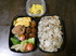 今日は、お弁当を職場に持参して食べます👍🥝キウイ、厚焼き玉子、ミートボール、鶏唐揚げ(冷凍)、青梗菜、ミニトマト、たくあんで五目御飯になります😋