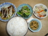 小松菜竹輪のナムル、白菜人参の酢の物、キャベツハムのお好み焼き、めかぶ納豆、ご飯■素材選び・味付け・野菜を食べてもらうコツなど、工夫したことは?