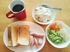 ■今日のおうちごはんは何?写真があればぜひシェアしてね!トースト、お魚ソーセージ、サラダ、バナナヨーグルト、コーヒー