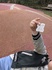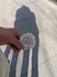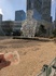 ①歩き回って疲れたところに滝が。「ほっ」②青空の下の巨人アート。芝生には入れないけどその周りで「わいわい」③気になっていた遊具でちょっと遊んでたら人が