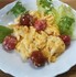 ▼今日もたまご大好き!みんなで食べたら報告お好み焼きに卵を使いました♪