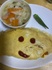 ▼今日もたまご大好き!みんなで食べたら報告えびピラフ他、ワンプレート盛りに目玉焼き🍳をつけたらボリュームあり見た目よし☺️