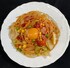さやインゲンいり卵です。味をつけた卵に茹でたさやインゲンを絡めるだけです。
