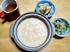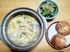 卵粥、酢の物、茹で小松菜