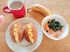 卵サンド、大根サラダ、バナナ、カフェオレ☕️